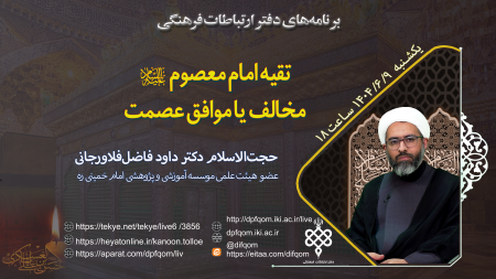 حجتالاسلام دکتر واود فاضلفلاورجانی | تقیه امام معصوم ع مخالف یا موافق عصمت | 1404/06/10 | 00/18/41 | ![]() | |