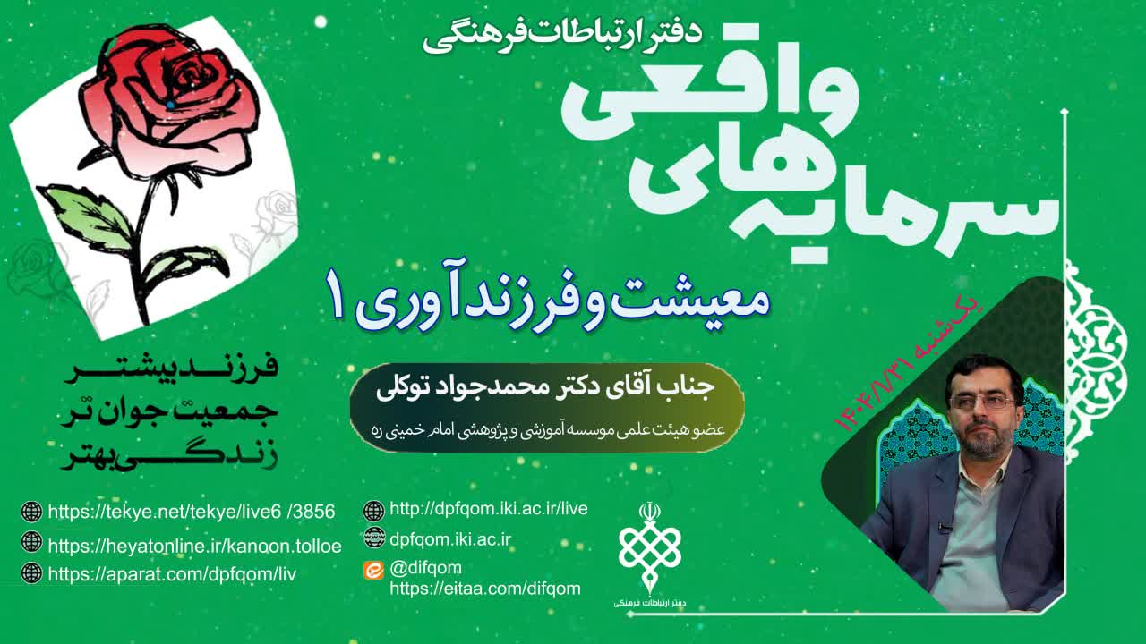 در این جلسه که توسط دفتر ارتباطات فرهنگی مؤسسه امام خمینی برگزار شد، دکتر محمدجواد توکلی درباره معیشت، ازدواج و فرزندآوری بحث کردند. ایشان هشدار دادند که ایران با یک بحران جمعیتی روبهرو است، به طوری که نرخ باروری به زیر سطح جانشینی (۱.۷) رسیده و در آینده با پیری جمعیت و کاهش نیروی کار مواجه خواهیم شد.
