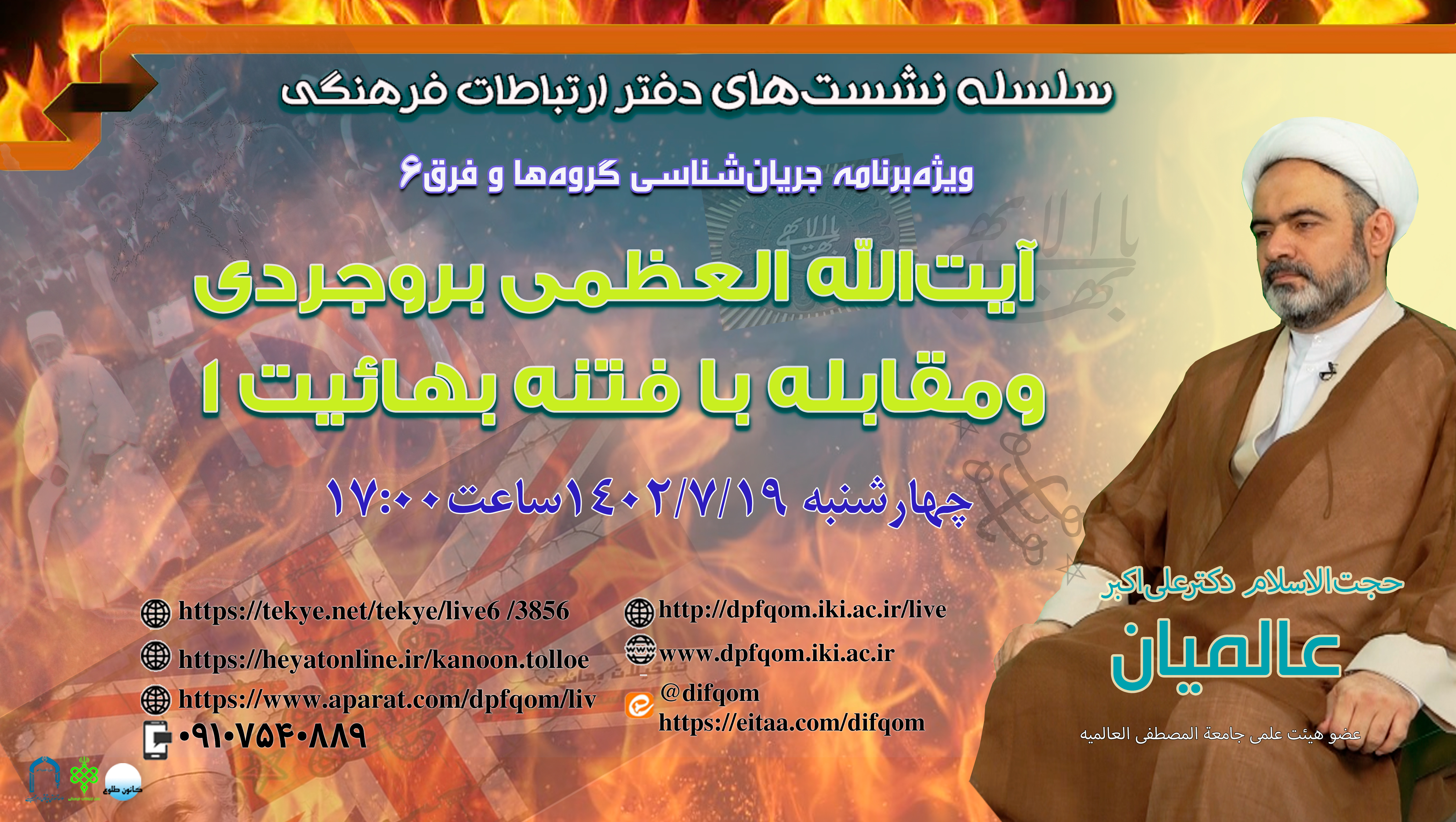 در این گفتگو حجتالاسلام دکترعلیاکبر عالمیان؛عضو هیئت علمی جامعة المصطفی العالمیه، موضوع "آیتالله العظمی بروجردی ومقابله با فتنه بهائیت قسمت اول"، را مورد بحث قرار داده است.