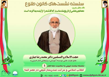 حجتالاسلام والمسلمین دکتر محمدرضا جباری  | انقلاب اسلامی و حرکت تمدنساز شیعی در عصر ائمه  | 1401/11/12  | 00:34:12  | ![]()  |  |