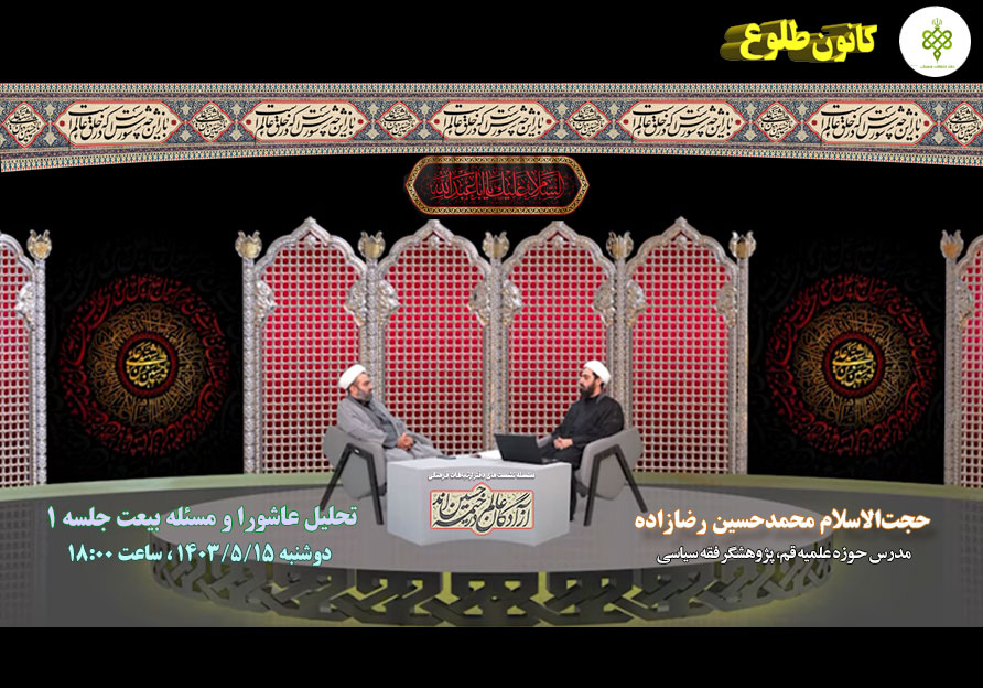حجتالاسلام والمسلمین محمدحسین رضازاده  | تحلیل عاشورا و مسئله بیعت جلسه اول  | 1403/05/15  | 00:24:24  | ![]()  |  |