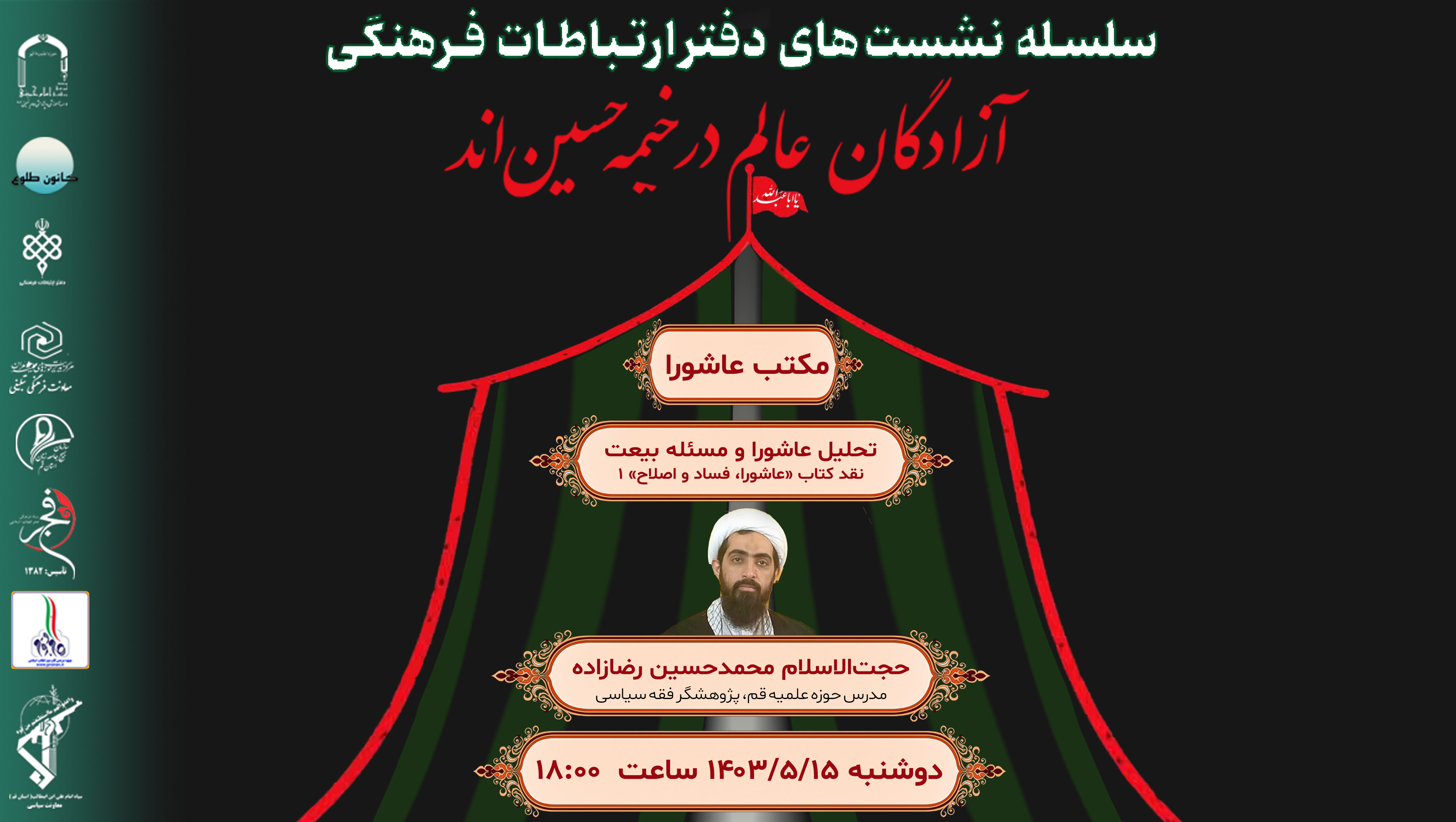 دفتر ارتباطات فرهنگی به مناسبت محرم سال ۱۴۴۵ در ادامه سلسله نشستهای تبیینی _ بصیرتی خود  گفتگوهایی را با کارشناسان و صاحبنظران تحت عنوان «مکتب عاشور»، برگزار کرد در این برنامههای کارشناسان با تبیین ویژگیهای این مکتب به تحلیل مسئله بیعت و تأثیرات آن بر واقعه عاشورا، کتاب کتاب «عاشورا؛ فساد و اصلاح» اثر حجتالاسلام دکتر فیرحی را نقد نموده است..