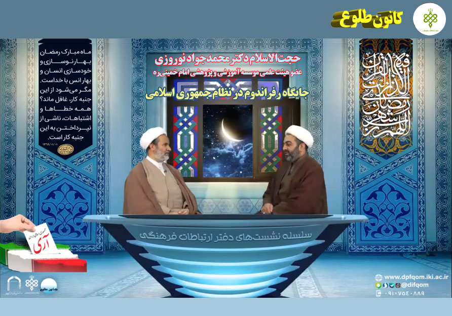 در این قسمت موضوع "جایگاه رفراندوم در نظام جمهوری اسلامی"، توسط حجت الاسلام دکترمحمدجواد نوروزی عضو هیئت علمی موسسه آموزشی و پژوهشی امام خمینیره مورد بحث قرار گرفته است.