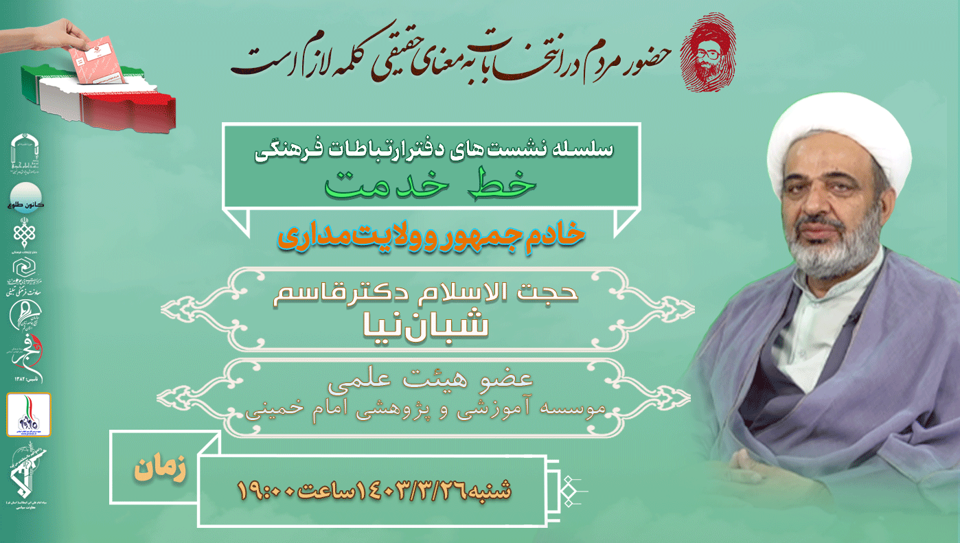 دفتر ارتباطات فرهنگی به مناسبت انتخابات ریاستجمهوری ۱۴۰۳در ادامه سلسله نشستهای تبیینی _ بصیرتی خود گفتگوهایی را با کارشناسان و صاحبنظران تحت عنوان «خط خدمت»، برگزار کرد در این برنامههای کارشناسان ضمن تبیین ویژگیهای انتخاب اصلح به ضرورت حضور و مشارکت در انتخابات خواهند پرداخت.