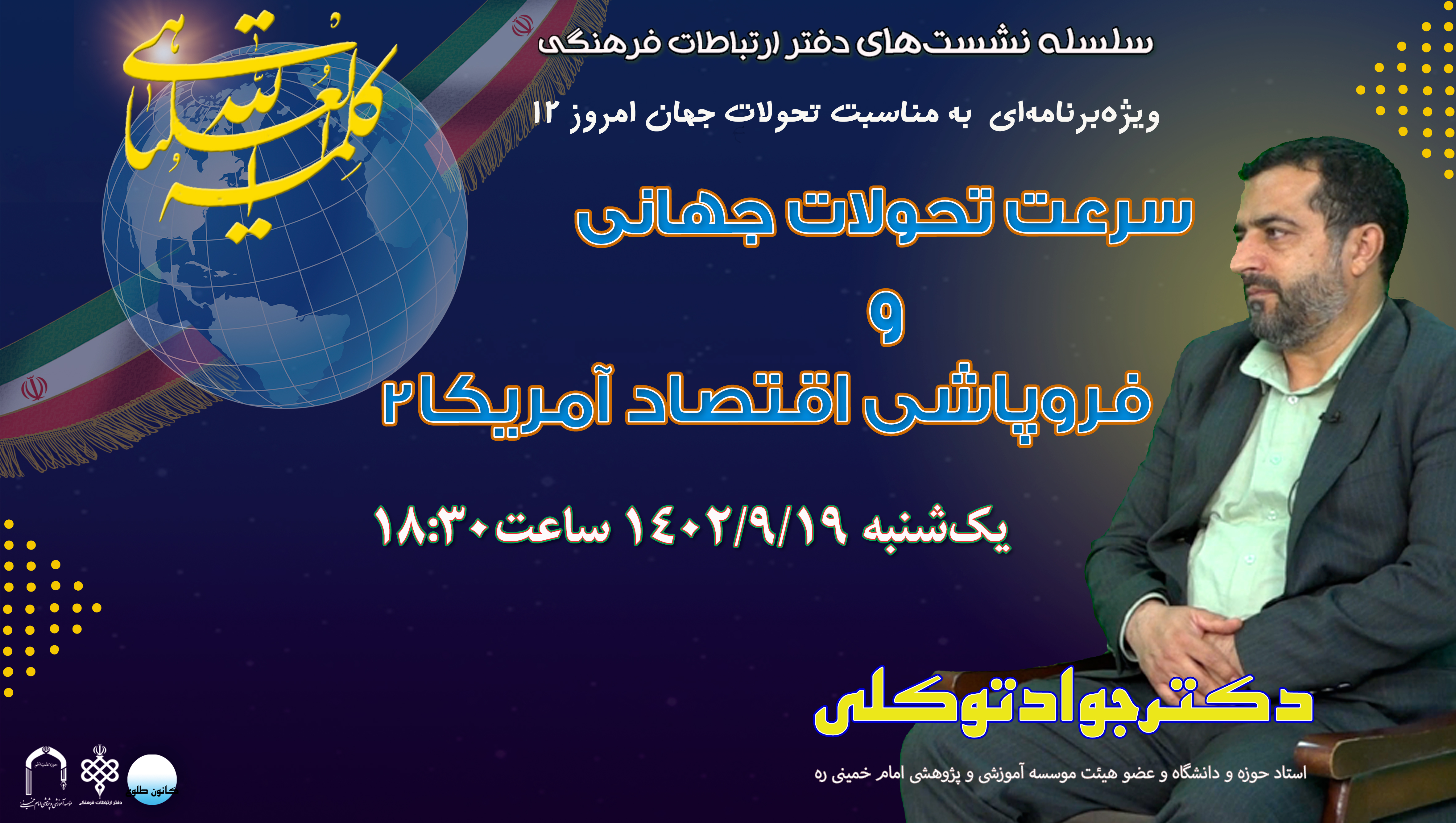 در این گفتگو حجتالاسلام دکترجواد توکلی؛عضو هیآٔت علمی دانشگاه معارف، موضوع "سرعت تحولات جهانی و فروپاشی اقتصاد آمریکا قسمت دوم"، را مورد بحث قرار داده است.