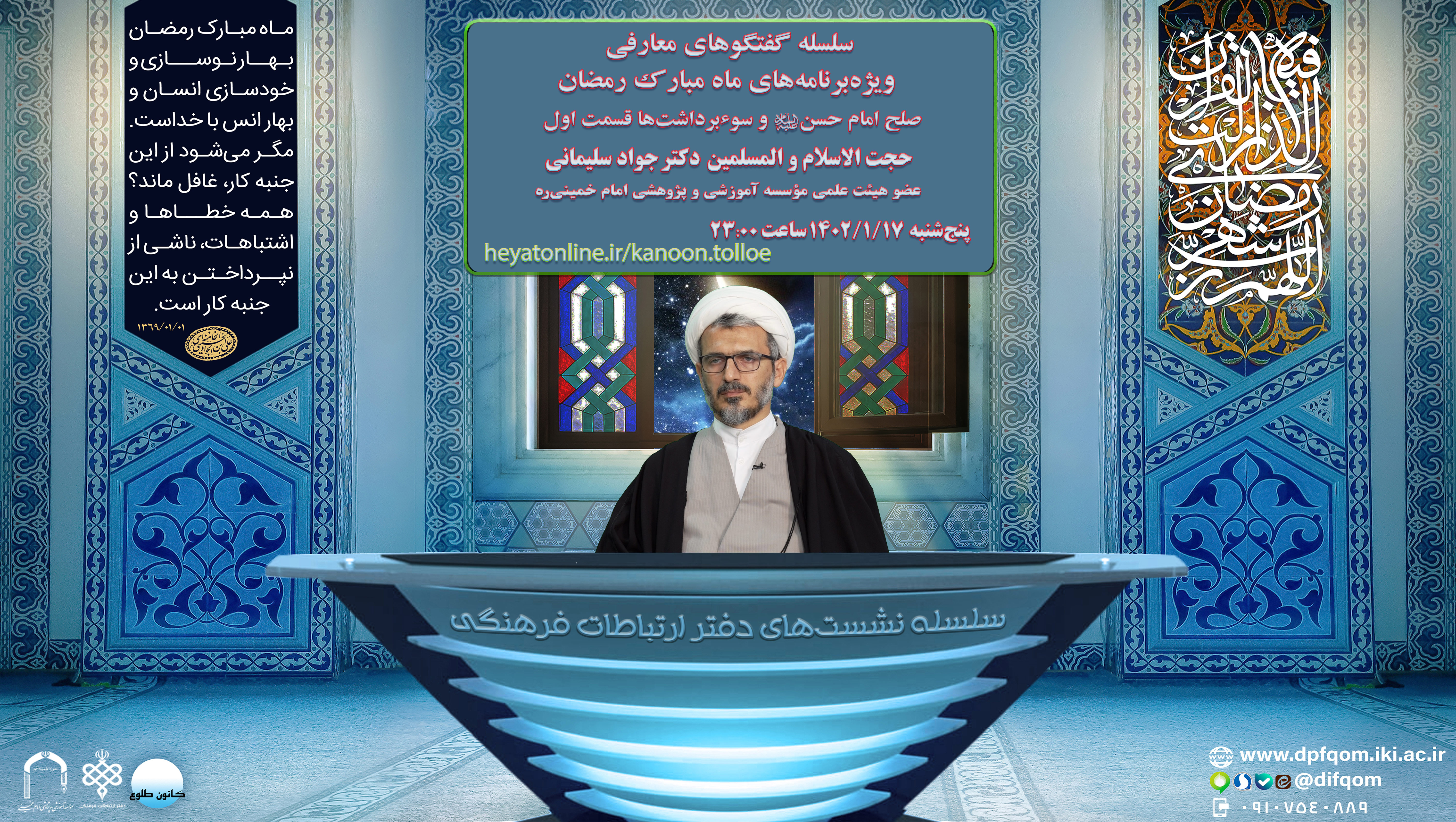 در این قسمت از سلسله مباحث تبیینی خود به مناسبت ایام ولادت حضرت امام حسن(ع)، موضوع "صلح امام حسن(ع) و سوءبرداشتها(قسمت اول)"، توسط حجت الاسلام دکترجواد سلیمانی عضو هیئت علمی موسسه آموزشی و پژوهشی امام خمینیره مورد بحث قرار داده است.