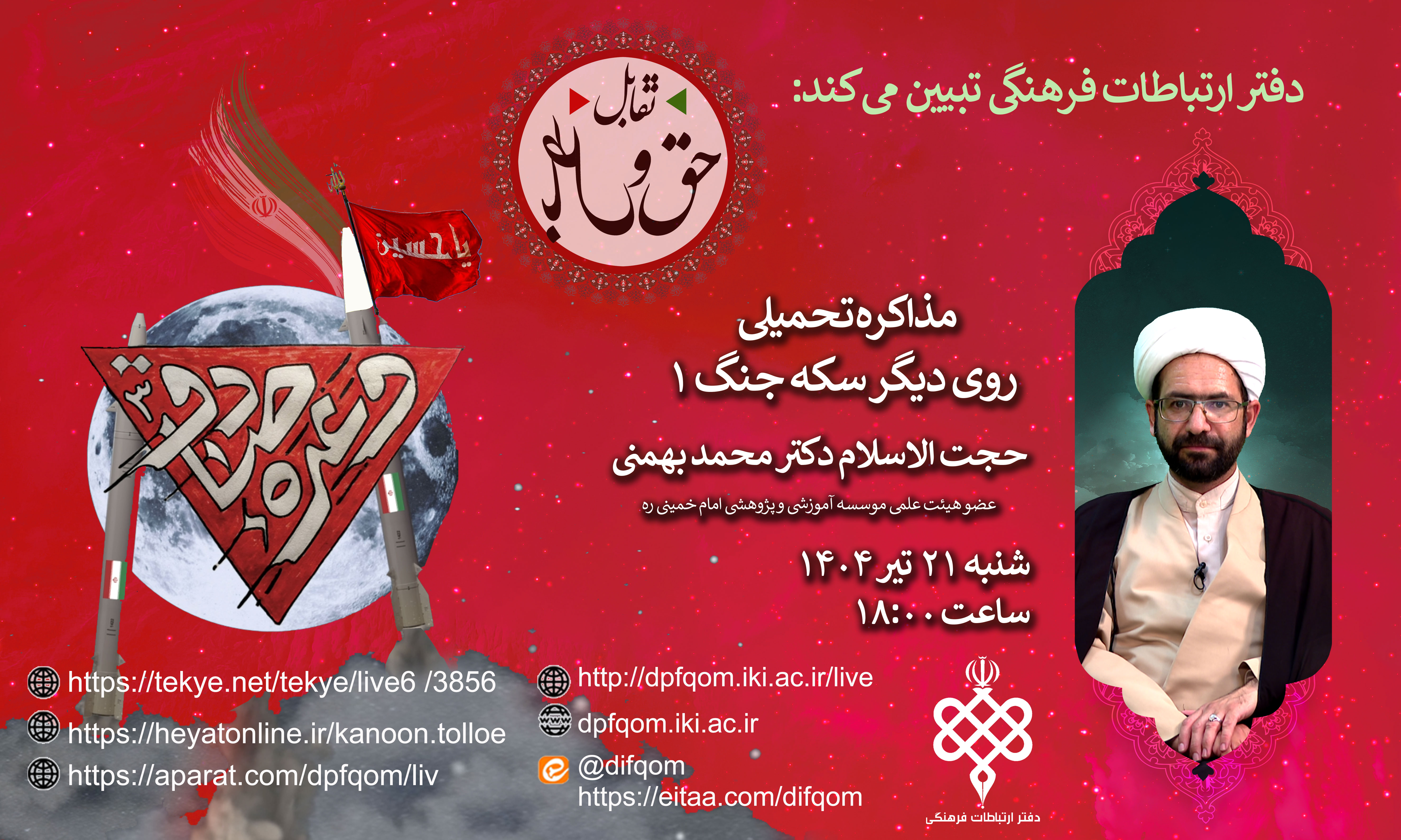 کلمات کلیدی: صلح تحمیلی، جنگ تحمیلی، جبهه حق و باطل، تقابل نظامی، مذاکرات استعماری، امام حسین (ع)، امام علی (ع)، جنگ صفین، بصیرت سیاسی، مقاومت اسلامی، استاد بهمنی، رهبر انقلاب، دشمن شناسی، جنگ روانی، استکبار جهانی.