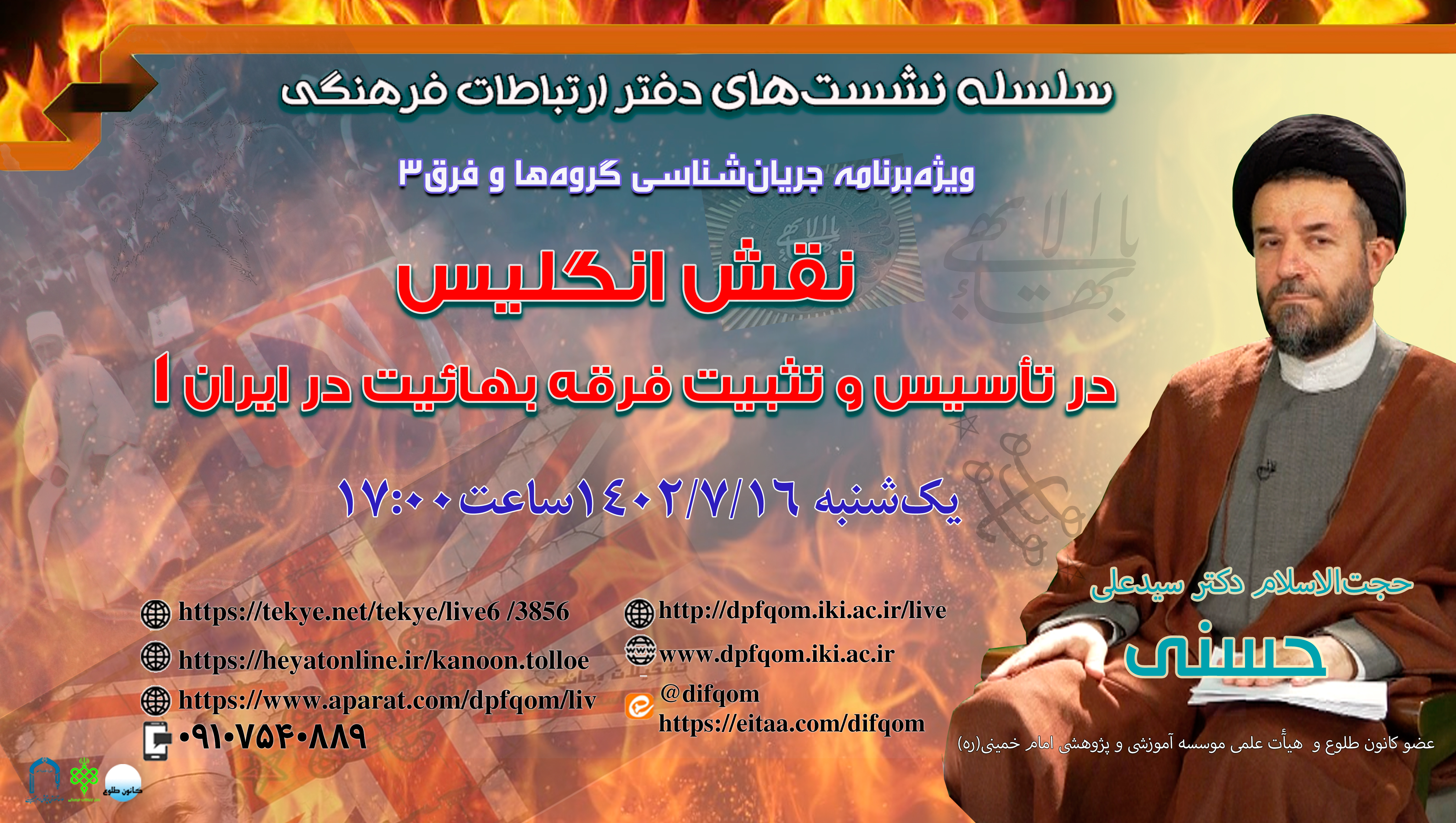 دفتر ارتباطات فرهنگی موسسه امام خمینی(ره) در ویژهبرنامهای تحت عنوان جریانشناسی گروهها و فرق  گفتگویی را  با کارشناس در این حوزه برگزار کرد. در این گفتگو فرقه بهائیت را بررسی کرد ونقش استعمار انگلیس در ایجاد و تثبیت این فرقه را تحلیل میکند.