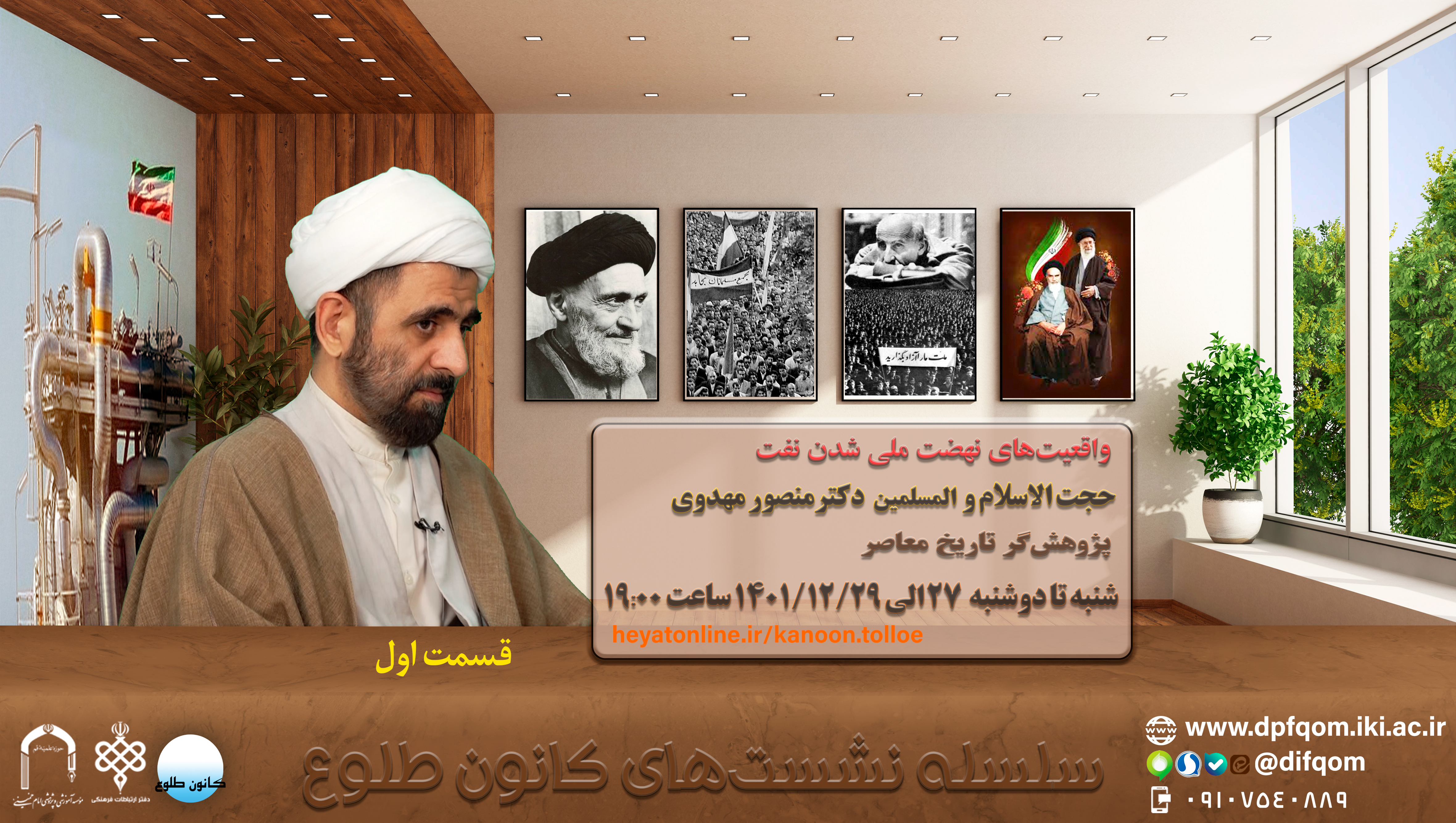 در این قسمت از سلسله مباحث تبیینی، موضوع "واقعیتهای نهضت ملی شدن نفت(قسمت اول)"، توسط حجت الاسلام دکتر منصور مهدوی پژوهشگر تاریخ معاصر و استاد حوزه و دانشگاه مورد بحث قرار گرفته است.